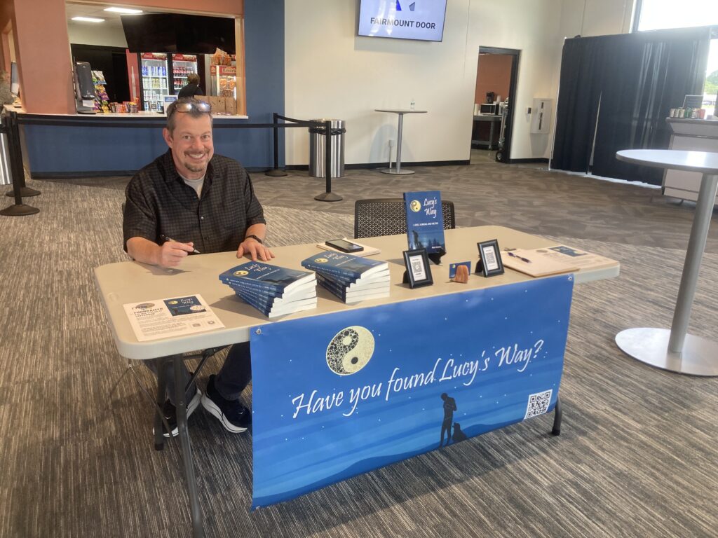 Selling and signing copies of Lucy’s Way during the vendor fair ahead of the Sep. 6 Rockin’ for Rescues benefit concert for the Marion-Grant County Humane Society at Gas City Performing Arts Center.